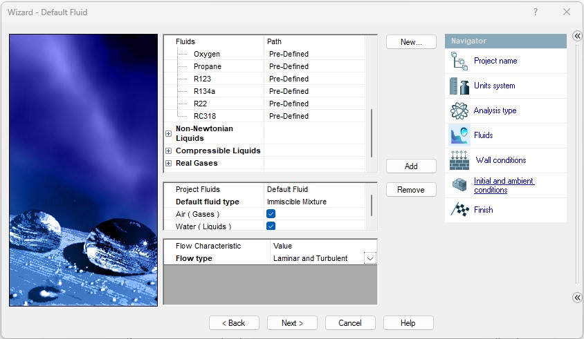 For the default fluid, make sure air and water are selected. Automatically, the ‘Default fluid type’ should be set to ‘Immiscible Mixture’, as shown in Figure 3.
