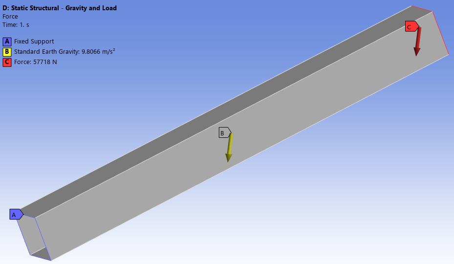 In this example, we have a 2-meter-long steel cantilever box beam subject to self-weight and a force on the free end, as shown in Figure 4.