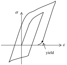 Depending on the stress history, one can even have the situation shown in Figure 10, where yielding occurs upon unloading, even though the stress is still tensile. However, this is physically unrealistic and reflects the main limitation of the linear kinematic hardening rule. Linear kinematic hardening may become inappropriate for very large strain because the actual Bauschinger effect evolves nonlinearly and often saturates, whereas the linear model assumes indefinite linear translation of the yield surface.