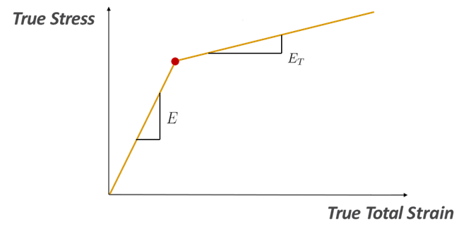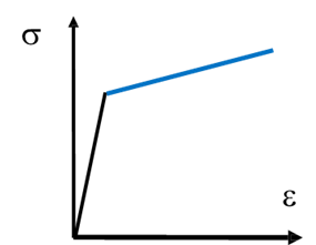 Bilinear hardening is the simplest hardening model. It characterises the post-yield response with just two slopes: