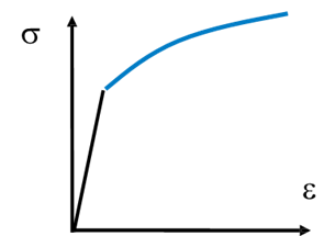 Figure 4. Uniaxial stress-strain curve (for a typical metal), showing elastic–perfectly plastic vs. strain-hardening behaviour.